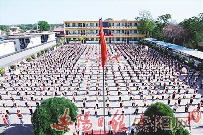 5月24日上午,殷都区水冶镇南关小学“礼赞百年 童心筑梦”第一届艺术节开幕。1000余名师生在操场上齐唱国歌,通过学习党史、大合唱等方式表达对党的无限忠诚和祝福。图为活动现场。