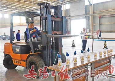 5月18日,由县总工会主办的2021年汤阴县叉车工技能竞赛在河南万庄安阳物流园举行。参赛的20名叉车工选手依次进行了叉托盘巧绕障碍、瓶口码水球等项目的比拼,选手们精湛的技术赢得了现场评委和观众的一致称赞。