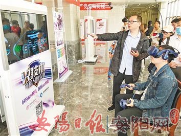 图为科技活动周启动仪式上,一位市民在体验 VR技术。