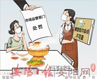 因在点餐系统中将纸巾设置为不可取消的“必选商品”,浙江省温州乐清市一家火锅店接到了来自市场监管部门的2万元罚单。(新华社发 曹一 作)