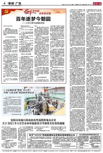 安阳市环境污染防治攻坚战指挥部办公室关于2021年4月全市水环境质量月考核排名结果的通报