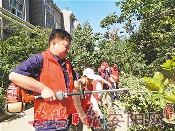 6月4日上午,西大街街道南门西社区联合市三角湖公园管理站,在社区会议室开展了“手拉手”学习活动,随后前往聚鑫苑小区开展环境保护志愿服务活动,对小区绿篱进行了修剪。经过1个多小时的劳动,志愿者共清运修剪下来的垃圾和杂物5车,修剪绿篱300米,小区面貌焕然一新,获得了小区居民的一致好评。(牛广荣 摄)
