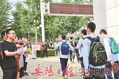 昨天,一年一度的高考正式拉开大幕,我市4万余名考生迎来大考。图为市第一中学考点门口,考生意气风发走向考场,老师在一旁为考生加油鼓劲。(本报记者 王小彤 摄)