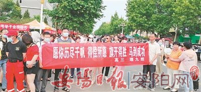 本报讯 (记者 郭 荣)高考首日,记者在林州市多个考点看到,莘莘学子怀揣梦想走进了考场,考场外,家长真情守候,文明单位联动,爱心志愿者真情服务,处处彰显着对考生浓浓的爱。