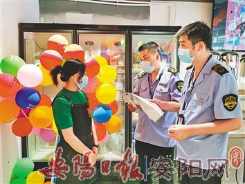 6月3日,龙安区市场监督管理局组织工作人员围绕食品经营许可和从业人员健康证明、进货查验制度及台账记录的落实等方面对考点周边的食品安全进行专项检查,全面消除安全隐患,确保中高考期间食品安全。 (李海彦 摄)