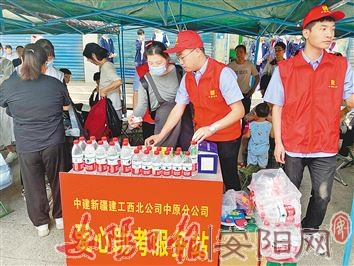 中建新疆建工西北公司中原分公司在市二中附近设立了爱心助考服务站,为大家免费提供矿泉水、文具、防暑药品,还免费提供爱心助考服务车接送考生。