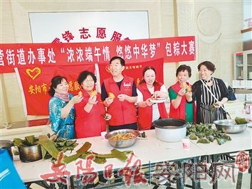 6月11日上午,安阳市银龄志愿服务队的志愿者走进北关区豆腐营街道向阳社区,与辖区居民一块儿举办“浓浓端午情 悠悠中华梦”包粽大赛。参加比赛的群众有的拌料,有的准备粽叶,有的切菜,有的揉面,有的擀皮,其乐融融。(杨社芬 摄)