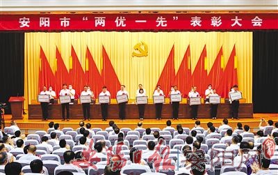本报讯 (记者 王慧敏 李 扬)昨天上午,安阳市“两优一先”表彰大会在市党政综合楼隆重举行,重温党的光辉历史,庆祝党的百年华诞,表彰全市优秀共产党员、优秀党务工作者和先进基层党组织,激励全市广大党员干部学习先进、争当先进,以更加昂扬的精神状态和奋斗姿态投身建设安阳、发展安阳的生动实践。省人大常委会副主任、市委书记李公乐出席会议并讲话。