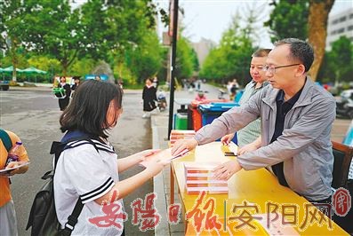 在大学生毕业、实习和暑假即将到来之际,市市场监管执法支队联合城区大队走进市区主要高校开展“防传销进校园”宣传活动。执法人员通过发放宣传册、制作宣传展板和多视角、面对面讲解等形式向学生普及传销的各种骗术、手段,现场共发放宣传手册6000余个,展出各种防传销知识展板16块、悬挂横幅6条,服务学生万余人。图为6月18日,执法人员在安阳师范学院发放防传销宣传手册。(李庆斌 摄)