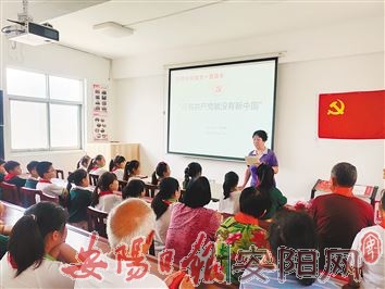 “我们是共产主义接班人,继承革命先辈的光荣传统,爱祖国,爱人民……”6月25日下午,嘹亮的歌声唱响东大街街道南门东社区党员活动中心,欢快的歌儿给社区增添了喜庆气氛。为宣讲党的历史,传承红色基因,南门东社区党总支邀请社区老党员给居民上了一堂别开生面的党课。图为活动现场。