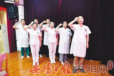 该院外科第一党支部书记张振法带领新党员进行入党宣誓,同时老党员重温了入党誓词。