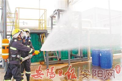 6月25日上午,河南利华制药有限公司开展了“特种设备、危化品泄漏应急消防演练”,组织各部门员工60余人,分成6个小组,通过演练,进一步增强了广大员工遇到突发情况时的应变能力,提高了员工的安全生产意识,营造了企业良好的生产环境,迎接“七一”的到来。(本报记者 李雪 摄)