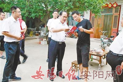 图为市农信办党组成员、安阳商都农商银行党委书记、董事长聂喜旺(右二)带头到农户家中普及金融知识。