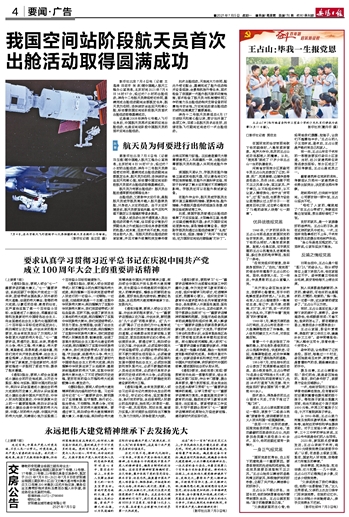 我国空间站阶段航天员首次出舱活动取得圆满成功