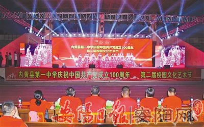 6月30日晚上,内黄一中庆祝中国共产党成立100周年暨第二届校园文化艺术节文艺会演在综合运动场举行。
