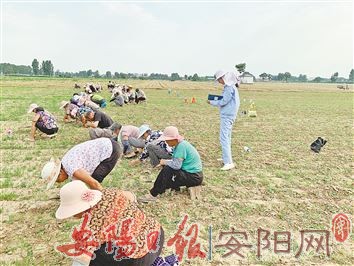 图为6月23日,市农科院科研人员在谷子试验基地记录数据,选育抗除草剂品种。 (张 扬 摄)