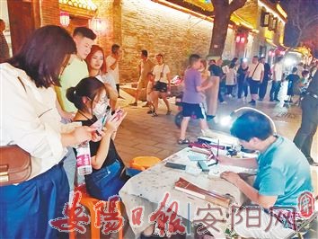 不止如此,街上的部分博物馆也在夜间开放,吸引不少市民前来打卡,探寻历史的奥秘。 “太好玩了,我找到了自己的姓氏,原来它的甲骨文是这样写的。”市民媛媛一边兴奋地说,一边拿起手机。在她看来,原来古板、枯燥的甲骨文在这里变得有趣起来,姓氏甲骨文墙这一创意形式,让更多游客愿意参与进来。记者了解到,开放夜场的博物馆与白天相比,增加了一些乐趣。借助灯光展示,平日单调的甲骨文投射在墙面上,激发游客的参与互动。此外,博物馆内很多展品旁边都配有二维码,市民用手机扫一扫就可以了解更多知识,这样的方式让文物活起来、体验动起来。“结束一天的忙碌和喧嚣,在凉爽的夏夜走进博物馆看历史,心静下来,自然也收获不少。一边逛街一边学知识,这样的举措真是太贴心了。”市民媛媛赞叹道。