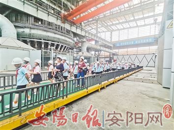“没想到钢铁厂这么美,就像公园一样!”“哇,还有孔雀、火鸡!”“我看到了一块厚厚的钢坯经过几道轧制工序后变成了薄薄的钢板!”“生产线好热啊,我体会到了炼钢工人叔叔的不易!”7月13日,在参观完安钢集团后,同学们不禁发出感叹。当天,市人民大道小学二年级飞扬中队的50余名同学在家长的陪同下走进安钢开展“爱家乡、做主人”暑期研学实践活动,欣赏工业旅游之美,现场感受“钢铁是怎样炼成的”和劳动者的奋斗之美。(本报记者 刘云丽 摄)