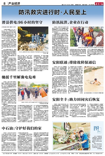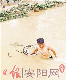 本报讯 大雨、大水,龙泉镇孟家庄村一片汪洋。孟庆亮是中国联通安阳分公司(以下简称安阳联通)的一名装维经理,从7月20日暴雨来袭开始,他已经连续3天奔走在乡镇各个站点之间,只为第一时间发现险情,确保重点光缆干线的畅通。