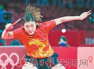 当日,在东京奥运会乒乓球女子团体半决赛中,中国队战胜德国队,晋级决赛。(新华社记者 王东震 摄)