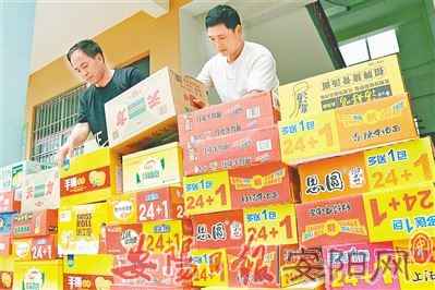 7月30日,爱心人士正在搬运捐赠的爱心食品。7月中下旬以来,内黄县遭遇了持续强降雨,部分乡镇受灾严重。灾情发生以来,社会各界爱心人士纷纷捐款捐物,倾情支援受灾群众。(刘 超 摄)