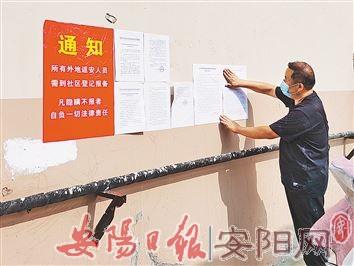 悬挂条幅,张贴通知,发放健康手册……连日来,殷都区各乡镇(街道)深入推进常态化防疫工作,广大党员志愿者走上大街小巷、走进商超门店,向居民、商户宣传防疫知识,引导大家养成戴口罩、勤洗手、经常消毒通风等良好卫生习惯。工作人员还全力做好监测,加强对中高风险地区返乡人员的调查、登记和隔离工作,筑起一道守护群众生命健康的防护墙。图为8月3日,清风街道工作人员深入辖区宣传防疫知识。(王雷生 摄)
