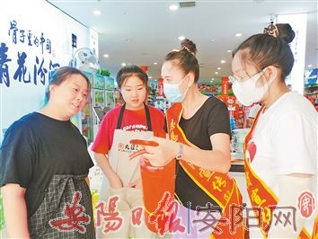 特大暴雨自然灾害发生后,次生环境安全隐患极易发生。连日来,安阳县消防救援大队以农村小卖部、小旅馆、小饭店等“九小场所”为宣传重点,携手乡镇网格员、消防志愿者开展以“除隐患保平安”为主题的沿街宣传活动,帮助各类场所排查各类火灾隐患。图为昨日,志愿者在辖区一商店进行消防宣传。
