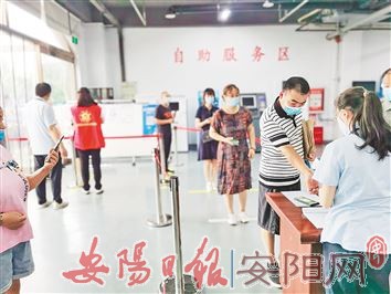 图②为8月6日,工作人员对办事群众进行测温、登记。(李 霞 摄)