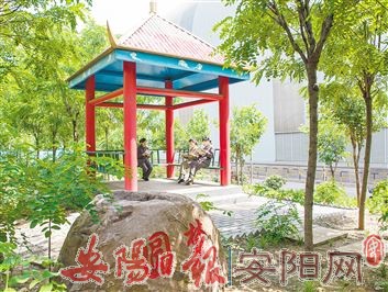图为8月6日,安钢运输部职工在自己动手打造的景观里看书。(郭 芳/文 李 聪/摄)