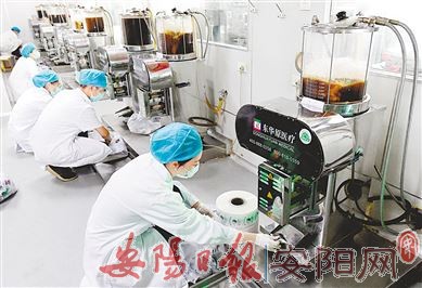 8月17日,郑州市中医院的药师在煎药中心内包装中药汤剂。