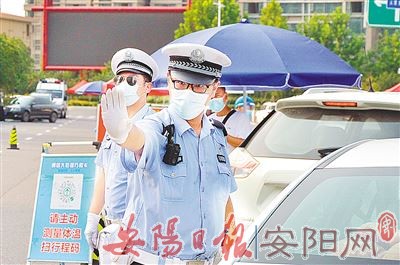 近日,市公安局交警支队配合防疫部门在进出我市的10个路口、路段设置健康检测服务点,负责车辆引导与交通秩序维护,对来自中高风险地区的车辆进行劝返。