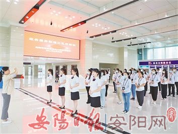 本次培训按照政务服务文明从业标准,对工作人员的着装规范、手势动作、标准站姿、文明用语等方面进行了规范和训练。来自市行政便民服务中心综合受理窗口和市市长便民公开电话受理中心的30余名工作人员参加培训。(徐先麒 摄)