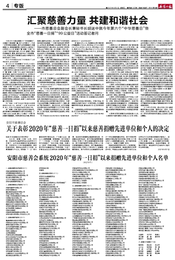 安阳市慈善会系统2020年“慈善一日捐”以来捐赠先进单位和个人名单 (共219个) |