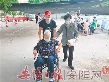光华路街道兴泰苑社区成立志愿服务组,采取专车接送、专人陪同、专用绿色通道等形式,为辖区老年人提供精准服务,推进疫苗接种工作。8月26日至31日,在该社区工作人员及志愿者的协助下,辖区60余位老年人完成了疫苗接种。同时,兴泰苑社区工作人员为老年人普及新冠疫苗接种知识,赢得了老人的一致好评。 图为8月30日,志愿者陪同老人接种疫苗。
