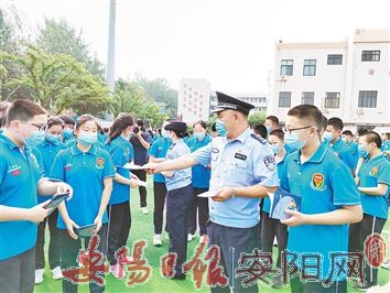 9月3日上午,市曙光学校举行2021年法治教育暨防校园欺凌报告会,市公安局北关分局曙光路派出所指导员霍文丰到学校作了报告,民警还为学生发放了相关宣传页,引导他们增强自我保护意识,拒绝校园欺凌。(本报记者 侯沛丽 摄)