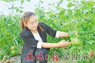 9月5日上午,东庄镇菅庄村党支部书记、村委会主任菅学景走进大棚查看西红柿的长势。“我们的西红柿再有20多天就能上市了,我们通过内黄县雪军蔬菜种植专业合作社引种了新品种西红柿酸甜果,注册了‘沃甜’商标,收入显著提高。没有引进新品种之前,一个4.5亩的大棚西红柿一季收入5万元,引进新品种后,一季收入10万元左右。”菅学景说。