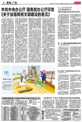 中共中央办公厅 国务院办公厅印发 《关于加强网络文明建设的意见》