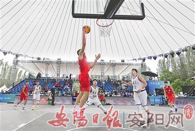 当日,在西安举行的第十四届全运会三人篮球项目男子19岁以下组小组循环赛中,辽宁队以20比17战胜天津队。 (新华社记者 孙凡越 摄)