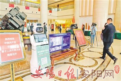 图③:市第十二次党代会期间,机器人“上岗”测体温
