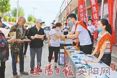9月22日上午,人行汤阴县支行组织全辖区296家普惠金融服务站,开展了金融知识普及月活动,共发放宣传页1.2万余份,达到了良好的宣传效果。(宋 昕 摄)
