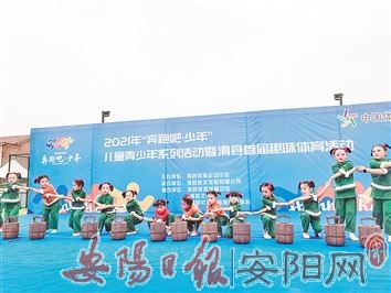 10月3日,由滑县体育运动中心主办的2021年“奔跑吧·少年”儿童青少年系列活动暨滑县首届趣味体育活动,以童心向党和庆国庆为主题,用丰富多彩、健康向上的体育活动,营造了欢乐、祥和的国庆佳节氛围,向伟大祖国送上诚挚的祝福,进一步增强了少年儿童的责任感及爱国、爱党情怀。孩子们的精彩表演赢得了现场观众的阵阵掌声。(罗 珊 摄)