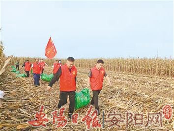 10月2日,安阳县自然资源局组织志愿者服务队赴崔家桥镇后艾亭村帮助群众抢收玉米。