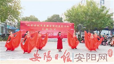 10月1日,由安阳市工人文化宫、北关区总工会、曙光路街道办事处联合举办的北关区秋冬季安全宣传系列活动启动仪式在曙光小区广场举行。据悉,此次活动包括宣传教育、安全检查、消防应急演练、自救互救培训等,切实提高市民的安全意识。图为活动现场。(侯华君 摄)