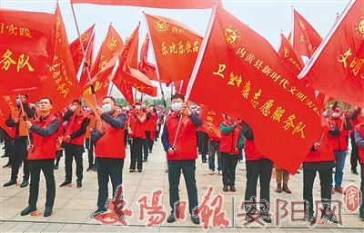本报讯 (记者 张武杰 通讯员 李纪法)10月8日,内黄县举行新时代文明实践志愿服务队授旗仪式。内黄县委书记、县新时代文明实践志愿服务总队队长王辉向县卫健委主任赵勇军授县新时代文明实践卫生健康志愿服务队队旗。
