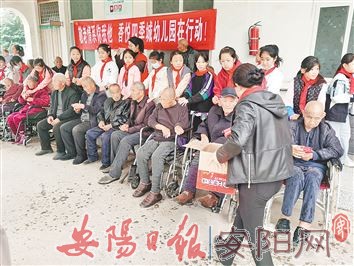 10月14日,滑县城南中心小学优秀少先队员代表和教师党员志愿者,走进该县小铺乡大铺村幸福院,给居住在这里的老人表演了配乐朗诵《敬礼·夕阳》、演奏古筝名曲《渔舟唱晚》等。少先队员还打扫庭院,为老人捶背、揉肩,陪老人度过了一个愉快的重阳节。(张建设 摄)