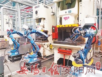10月15日,记者走进福斯罗(安阳)轨道装备有限责任公司的生产车间,放眼望去,高度智能化的机械设备正在高效地生产着螺栓产品,车间内工人的数量反而不多。在螺旋道钉生产区,3个工业机器人为一组,分工协作,共3组工业机器人正一秒不停地进行螺旋道钉生产作业。