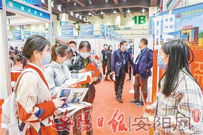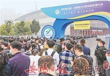 金秋送爽,丹桂飘香。10月23日至24日,第四届中国·河南招才引智创新发展大会、第二届中国·河南开放创新暨跨国技术转移大会在郑州国际会展中心举行。我市75家企事业单位参加高端人才(项目)洽谈会,现场提供人才需求岗位3589个,吸引了众多人才前来应聘。