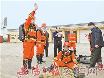 为增强队员的应急救援能力,近日,安阳市工矿应急救援中心举行了一场技能对决赛。图为比赛现场。(本报记者 李 雪 摄)