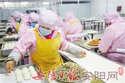 牛屯镇高营村联富食品厂生产的手工饺子深受用户青睐,供不应求。目前,该厂每天生产饺子4吨~5吨,为周边100余名农民提供了就业岗位,让他们实现了就近就业,有了长期稳定的收入。图为10月26日,该厂生产车间一角。(本报特约记者 徐淑霞 摄)