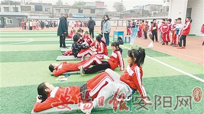 10月26日,市东门小学东大街校区组织一年级至六年级学生举办2021年达标运动会。该校根据低、中、高年级学生体质达标要求,分别设立了视力、身高、体重、肺活量、坐位体前屈、50米跑、1分钟跳绳、1分钟仰卧起坐等不同的达标项目。图为学生在做仰卧起坐。
